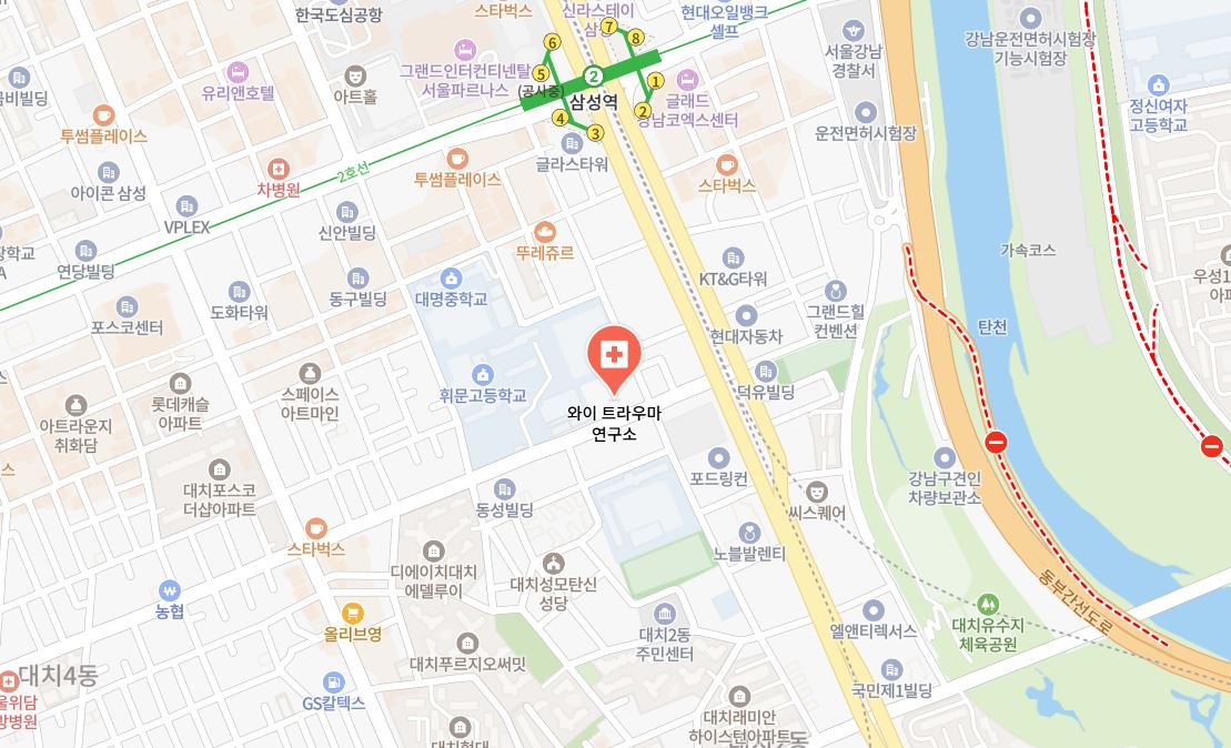 ※ 대중교통: 지하철 2호선 삼성역 3번/4번 출구로 나오시면 도보 7분 거리